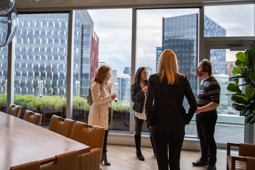 As we walked out of the boardroom and into the common space. And you just mentioned that we’re now kind of in the middle of the longer oval yeah. Full width. Yes. There you go. The full width and there’s floor to ceiling, glass, glass, windows. And then from, you know, I look left and you can see the buildings of downtown and then I look right and you can see the space needle. Yes. And you just have this UN encumbered view.