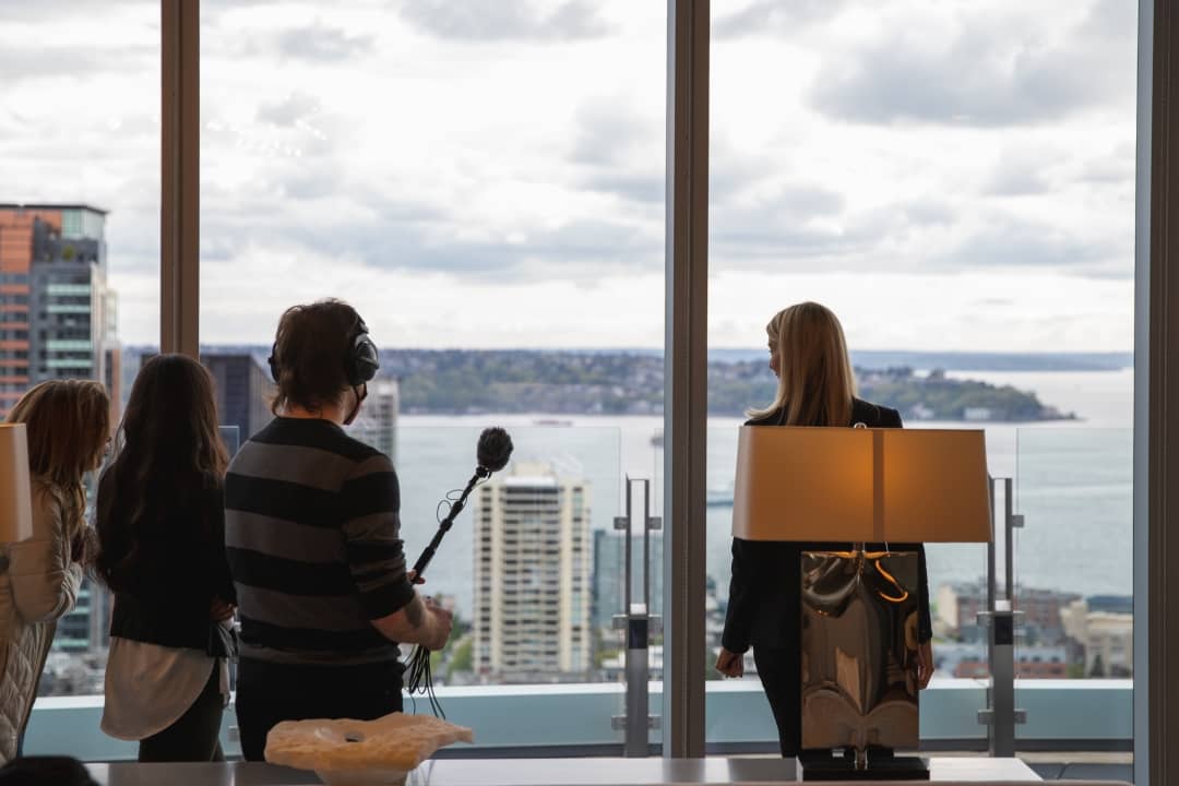 This week, interior designer, Susan Marinello takes us through her team’s latest project. The McKenzie tower in the heart of downtown Seattle. This is unbelievable. We take a high speed elevator up 40 floors and meet Susan at the top. How