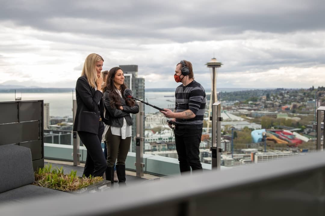 Ears. I know. In fact, my ears are still ringing too. Yeah, yeah. Um, yes. And here we are. I was hoping the sun would be out because it is the most divine sunset. I think in downtown Seattle, it’s a beautiful place to sort of perch and understand all that’s happened in our beautiful city in the last, um, five, seven years