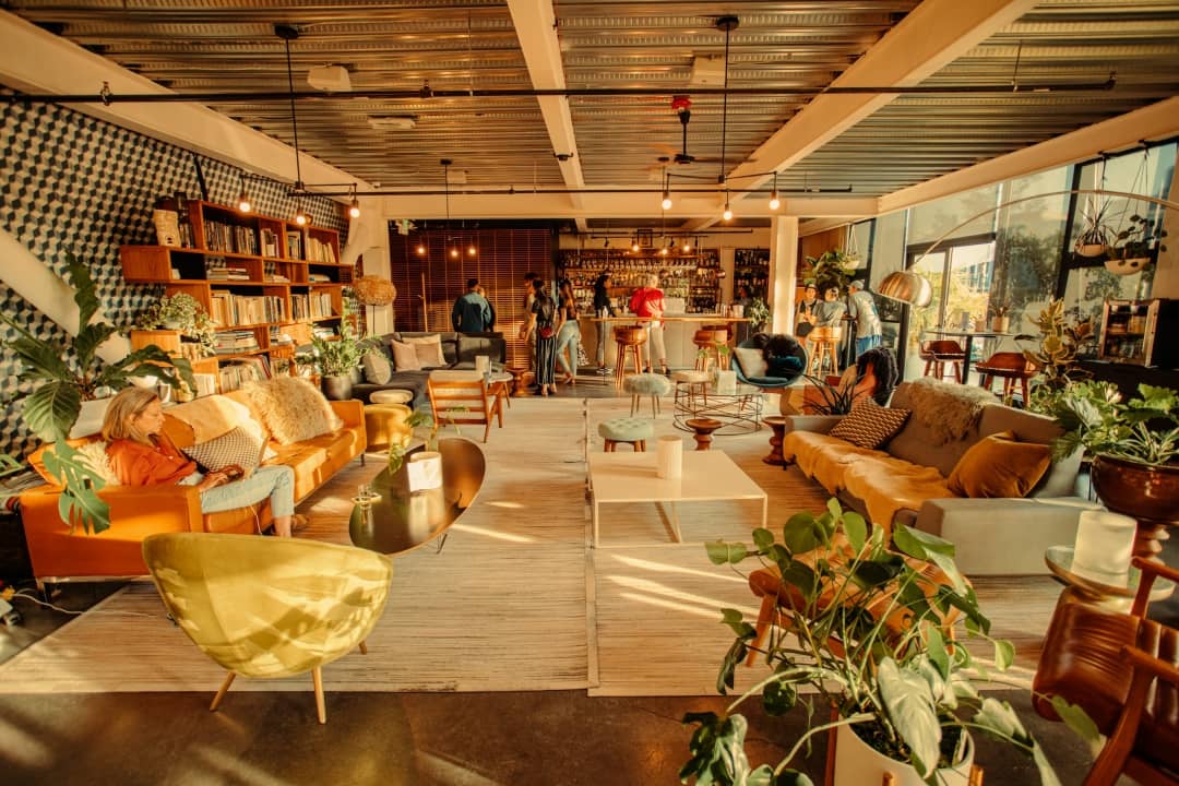 Sure. This is The Cloud Room. This is a co-working space that we opened about six years ago. We really catered to kind of the local Capitol Hill based creative crowd media, lots of tech people actually here, too, and it’s kind of smaller and more intimate and more locally based than a lot of the bigger co-working chains, and because we have this lounge and the bar and the outdoor deck, we’re able to host a lot of cultural events and just bring in a lot of neighbors who don’t necessarily need a workplace, but come to the bar and hang out.