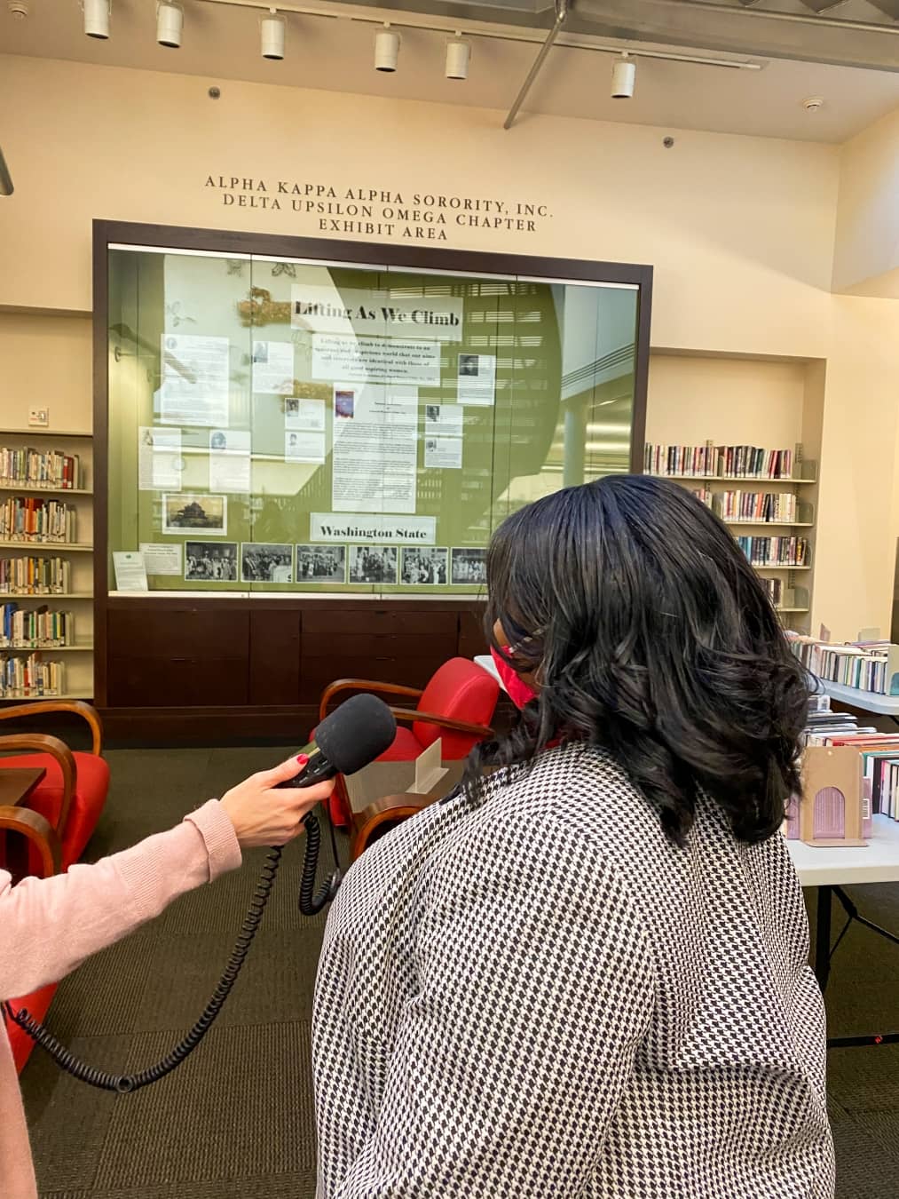 Like it’s not just the books that are on the shelf here that enrich us. It’s the artwork. It’s the rooms that are in this library, named after important trailblazing African American men and women and families of this community, pioneers like the Gayton Family Meeting Room, the Gayton family is just an influential African American family, who they were pioneers here. They’ve been here since the 1880s. And then we have the Louise McKinney reading room named after the former first lady of Mount Sinai Baptist church, the first Baptist African-American congregation founded in 1890 here in Seattle. So we learned so much about African American history, about Seattle and about ourselves at the Douglass-Truth Library.