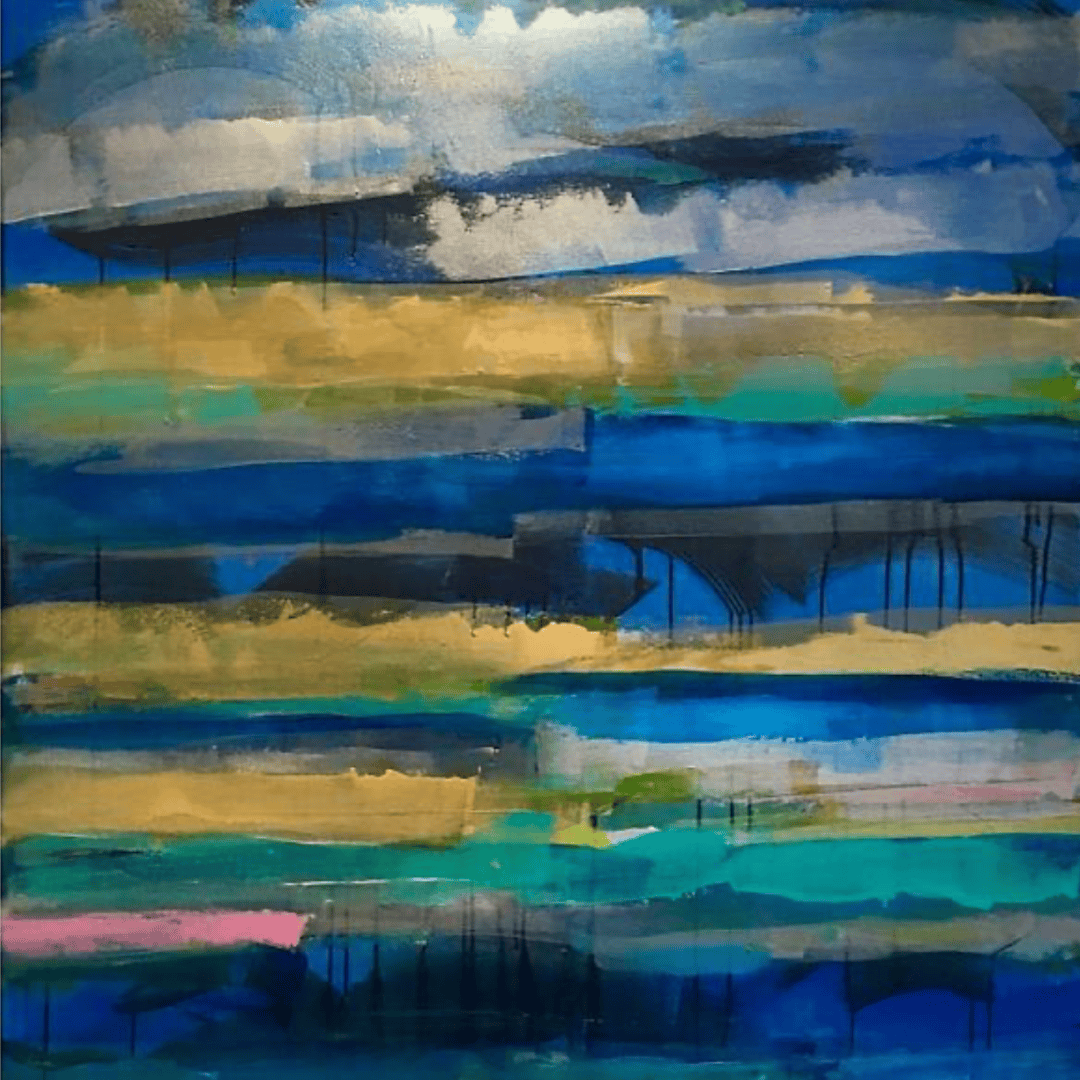 She is inspired by color and music. At the core of her aesthetic is form, color and movement. Her abstract works embrace a dialogue between formal abstraction and the imagery as extracted from observations of nature. She is fascinated by the tension between spontaneous and organic elements, as well as geometric ones The contrasting rigidity of the grid and the fluidity of the arcs are enhanced by sweeping washes of transparent paint that inspires meditation while bringing live lines to any space. Her bold compositions are created using acrylics, oils, and pencils on canvas.