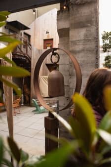What was left of the old building were these large cement pillars and scaffolding that framed the seating area of the patio. The pillars don’t serve a structural purpose anymore, but it gives the courtyard this edgy cool factor.