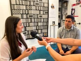 Yeah, come over here. This is the first blanket we ever produced. Eighth Generation is the first Native-owned company to produce wool blankets. As an entrepreneur, I didn’t have any business knowledge, and I didn’t have any money.
