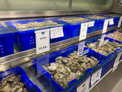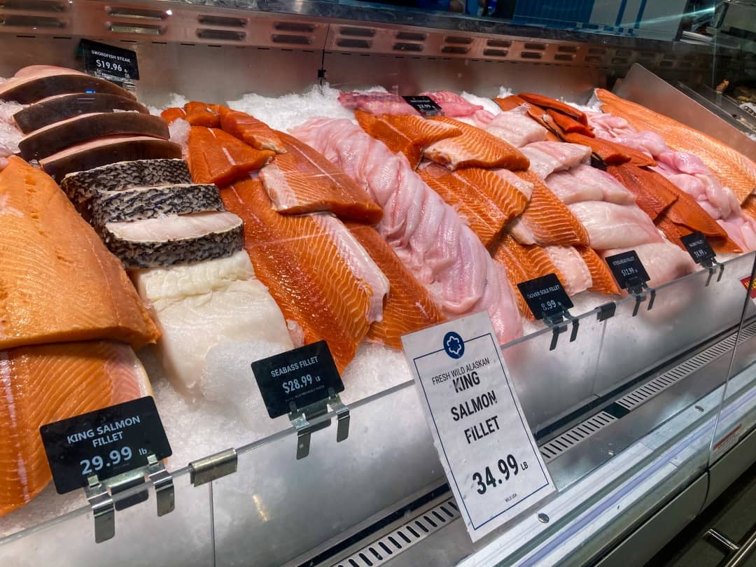 Nothing up to that amount of it, for sure, or variety I would say. Yeah. [inaudible 00:06:23] … some seasoned pork, so already made for dumplings if you wanted to make the dumplings. It kind of skips a step, which is really nice for [inaudible 00:06:33] … very busy. So our sashimi department, we have restaurant grade quality sashimi fish here, and we really wanted to distinguish it from your experience buying it there at this counter versus buying it at the more fish market type of environment. So we enhanced this, we call it our sashimi island, and it features a house-made poke every day. You can see the sashimi cutters at the corner here cutting expertly, these pieces of fish, and then you can pick them up to go home on all the way around it.