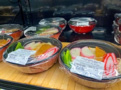 They also run into about five family members a day if you were here. We’re moving into more of our deli offerings. I would say our [foreign language 00:07:51], our grandmother would probably be just astounded at what the kitchen and the deli looks like today. We remember her in the old store. She would make lunch for all of the employees every day, and she would hand roll the sushi rolls and the curries and all of the different dishes. That’s what I remember her. She would be in that back corner of the store making lunch. So now, it’s really this place to find all types of different foods ready to eat. We have our sushi, our… Let’s see. We have noodle bowls over here. We have all the kind of, a lot of the traditional side dishes that you find in Japan and different… We have shumai and Vietnamese spring rolls. Yeah.