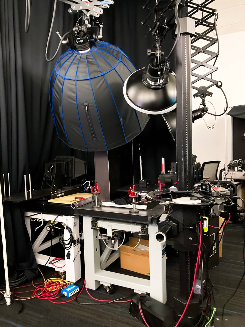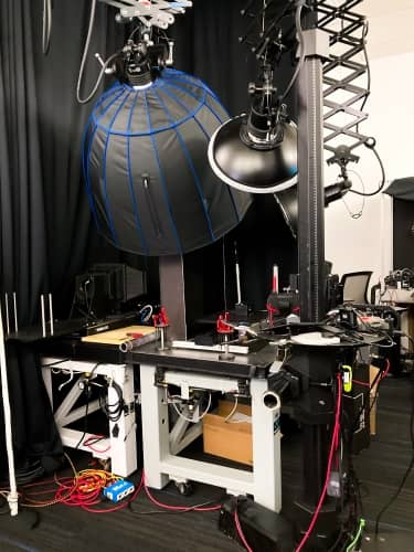 So The Three Amigos camera, how do I… I mean, how do I even describe this? Picture a giant camera, multiply it by three, and then put on three giant lenses, the biggest lenses you’ve ever seen. Nathan has built this custom stand for them. And so it puts them all in a row. And the lenses of them probably extend over a foot long.