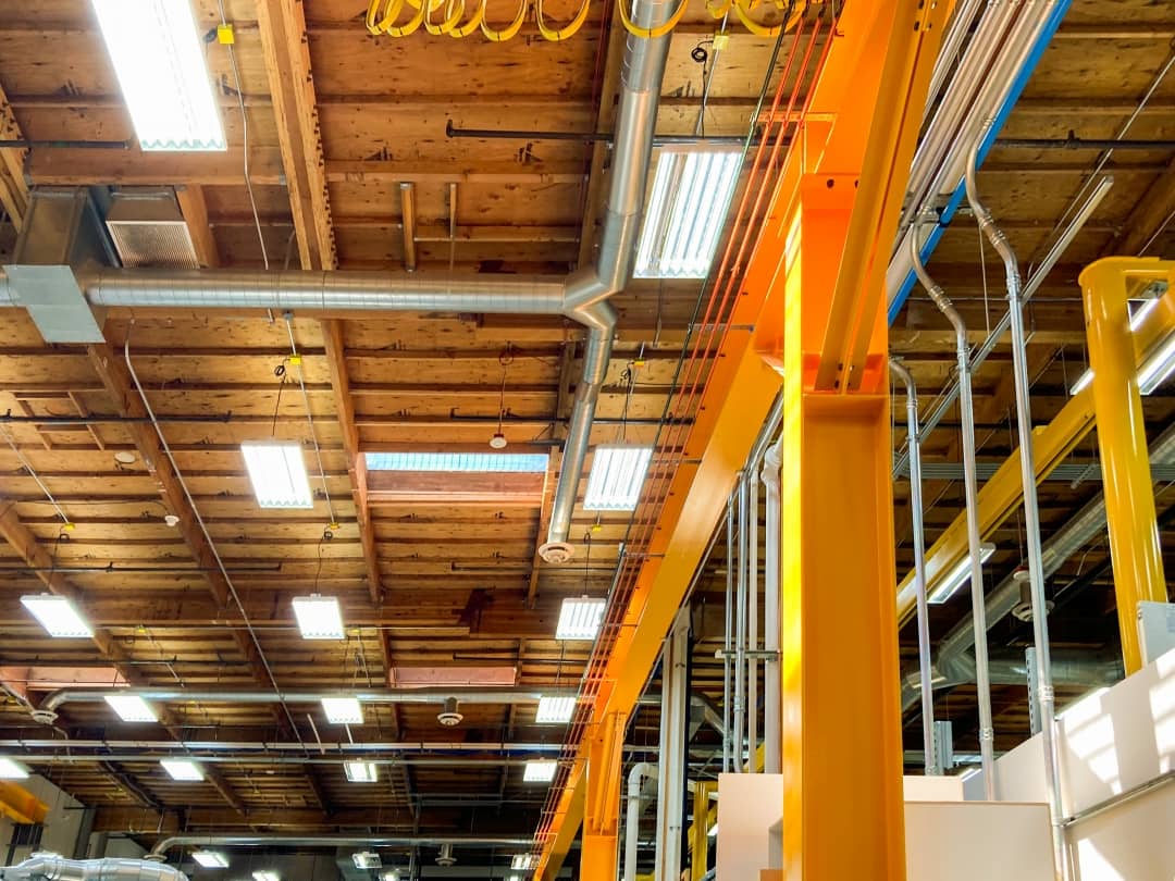 Yep, folks. A crane. Like a three-story crane inside the machine shop.