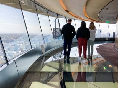I’ll start with the client side, which is that the project is owned by the Wright family. And they have been the caretakers. Their grandfather was the original contractor who built the building and he invested in the building and they right now own it. So there’s this beautiful lineage and it’s their sort of responsibility to care for this building for all of us. And they’ve been doing it masterfully. And so Jeff Wright was leading the family as chairman of the Space Needle at the time. And then the gentleman just to our left, as we’re standing out here, who’s also walking around the top is Ron Sevart. He’s the CEO of the Space Needle. And Karen Olson who was with us moments ago is the current COO. And they are an amazing team of people and amazing clients because they come to you as a designer, and ask you to think 10 times bigger than you think you were supposed to.